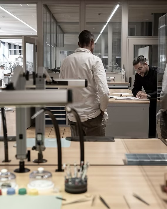 Wer hat an der Uhr gedreht? Montiere ein Zahnrädchen oder versuche dich an der Drehbank. So erfährst du aus erster Hand, wie unsere Zeitmesser aus Schweizer Industrie-Nebenprodukten entstehen. Angelo Nottaris, der jüngste Spross der Uhrmacherfamilie, entwickelt Zeitmesser, die jahrhundertealtes Wissen mit zeitlosem Design und fortschrittlicher Technik verbinden.